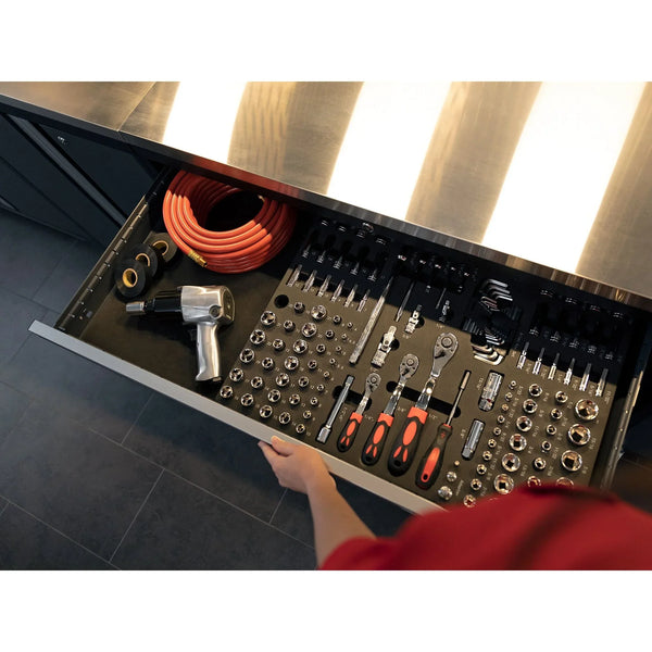 Enjoy easy access to your tools and gear thanks to integrated full-length handles, soft-close hinges, and sturdy drawer slides. Elevate your garage organization with the NewAge Products Pro Series collection.